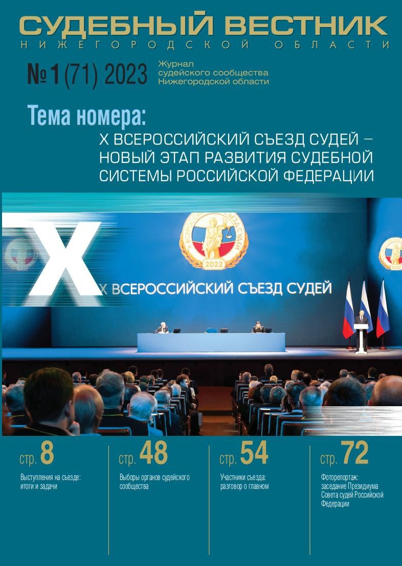 Нижегородский областной суд и Управление Судебного департамента в Нижегородской области выпустили первый в 2023 году номер журнала судейского сообщества Нижегородской области «Судебный вестник Нижегородской области».
