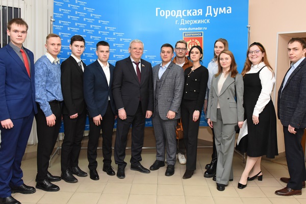 Сегодня представители Молодежного парламента города встретились с председателем Законодательного Собрания региона Евгением Люлиным в городской Думе города. Спикер нижегородского парламента побывал в Дзержинске в рамках рабочего визита.