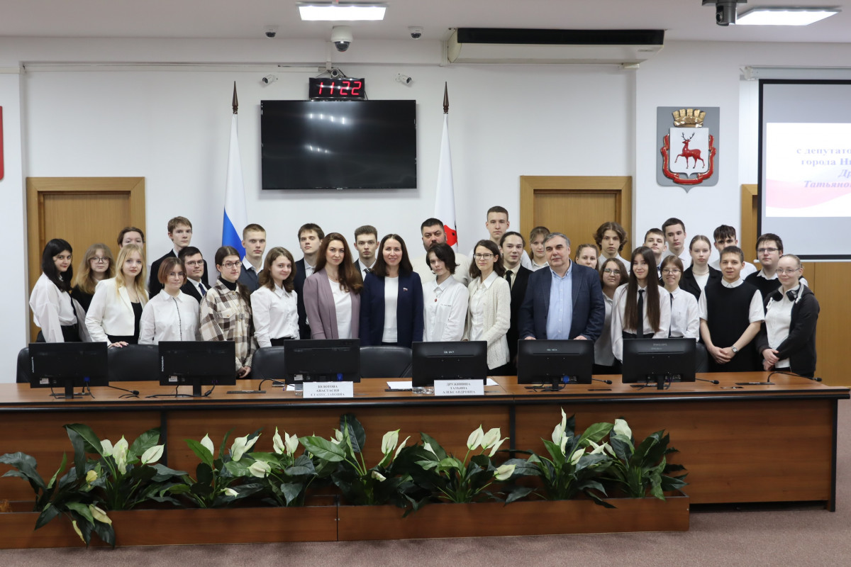 Депутат городской Думы Нижнего Новгорода Татьяна Дружинина встретилась с руководством и старшеклассниками школы №160 Ленинского района. Об этом сообщает пресс-служба нижегородской Гордумы. В беседе с школьниками приняли участие также заместитель руководителя аппарата городской Думы Денис Кузнецов и председатель Молодежной палаты при городской Думе Анастасия Золотова.
