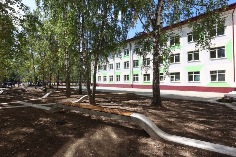 В здании отремонтированы столовая и спортивный зал, благоустроена пришкольная территория. Столовая выполнена в виде уличного кафе с фонарными столбами. Для учеников доступны 15 просторных кабинетов с необходимым оснащением.