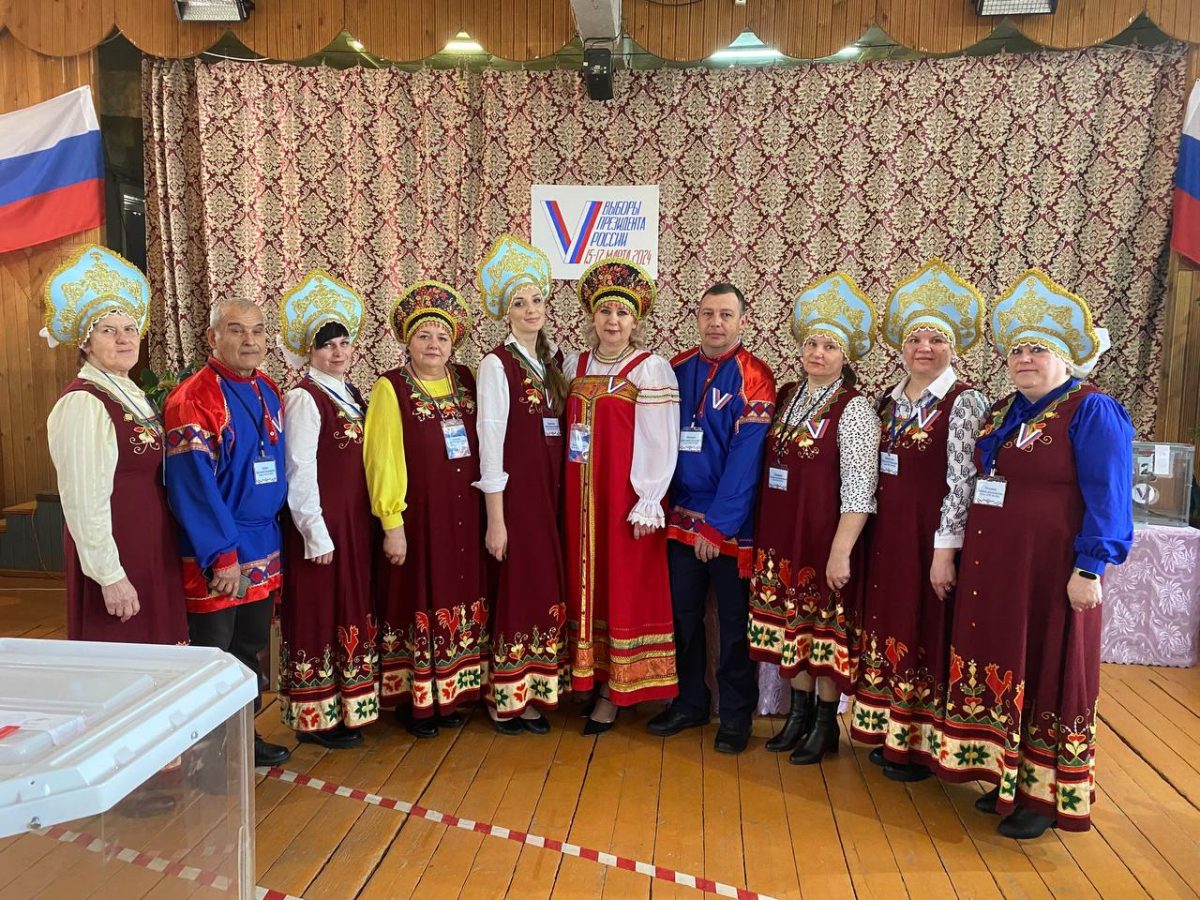 Члены участковой избирательной комиссии в Воскресенском округе переоделись в традиционные костюмы.