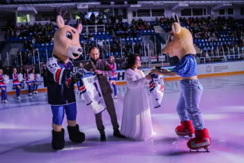 В День всех Влюбленных в Нагорном Дворце спорта впервые в хоккейном мире перед стартом матча «Торпедо» - «Сибирь» прямо на льду при поддержке Нижегородского Дома бракосочетания состоялась настоящая свадебная церемония!