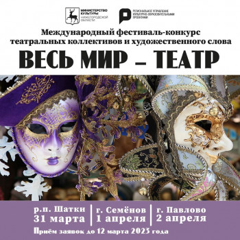 Открыт приём заявок на конкурсные прослушивания для участия в Международном фестивале-конкурсе театральных коллективов и художественного слова «Весь мир – театр», который организует министерство культуры и региональное управление культурно-образовательными проектами Нижегородской области.