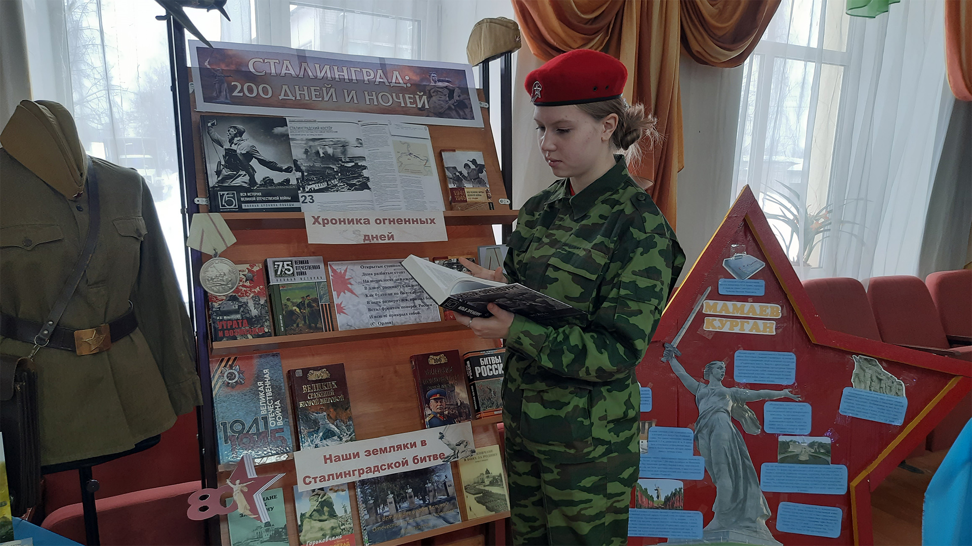 В фойе библиотекарями Ветлужской модельной библиотеки была оформлена книжно-иллюстративная выставка «Сталинград: 200 огненных дней и ночей». Все желающие смогли проверить свои знания о событиях 2 февраля 1943 года, приняв участие в интерактивной познавательной игре «Танковый биатлон».