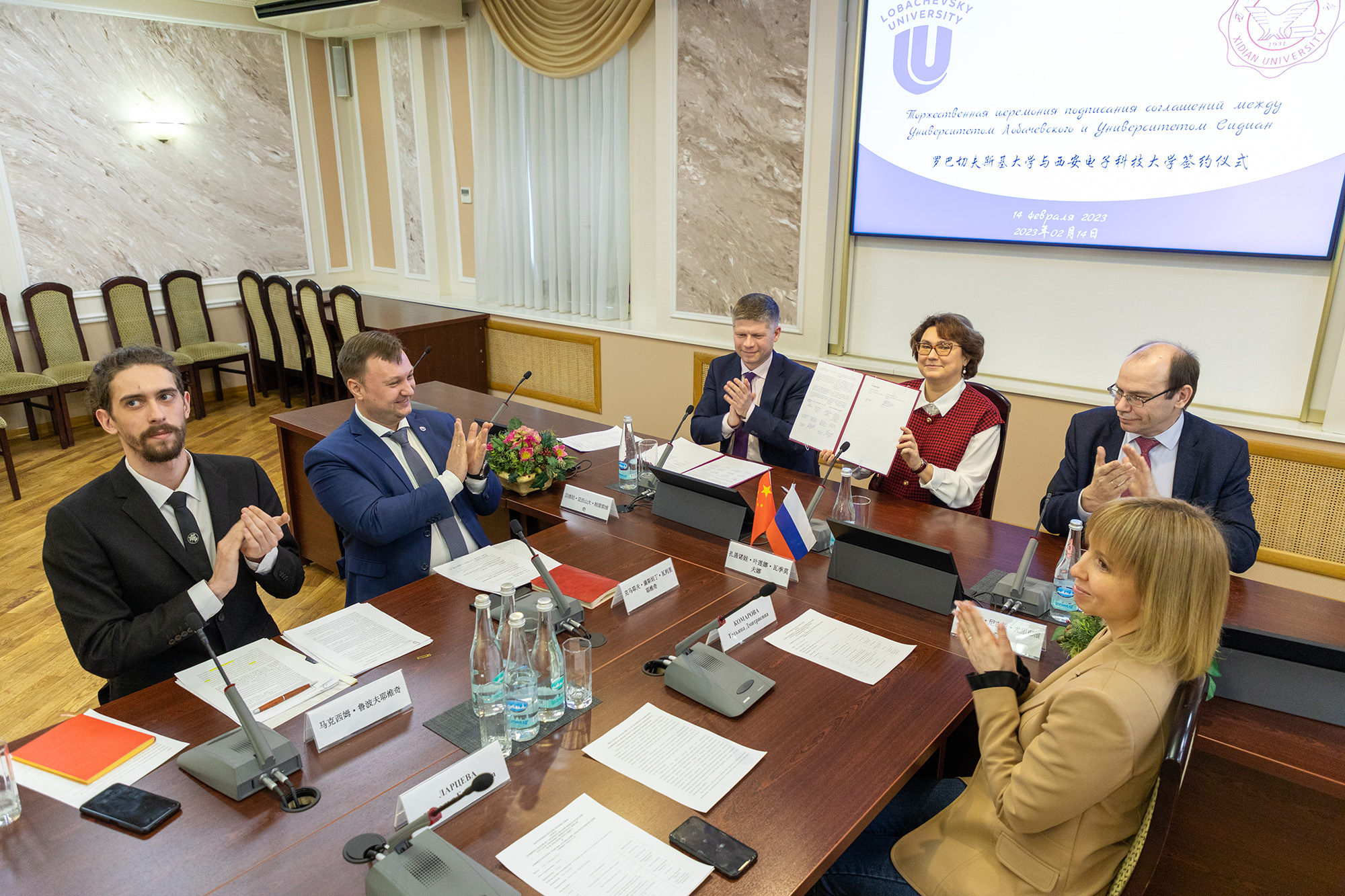 Университет Лобачевского и Сианьский электротехнический университет (СЭУ) заключили соглашения о сотрудничестве в области образования и науки, а также об академических обменах обучающимися. Процедура подписания прошла в формате ВКС 14 февраля 2023 года. Свои подписи под документами поставили ректор Университета Лобачевского Елена Загайнова и президент СЭУ Чжан Синьлян.
