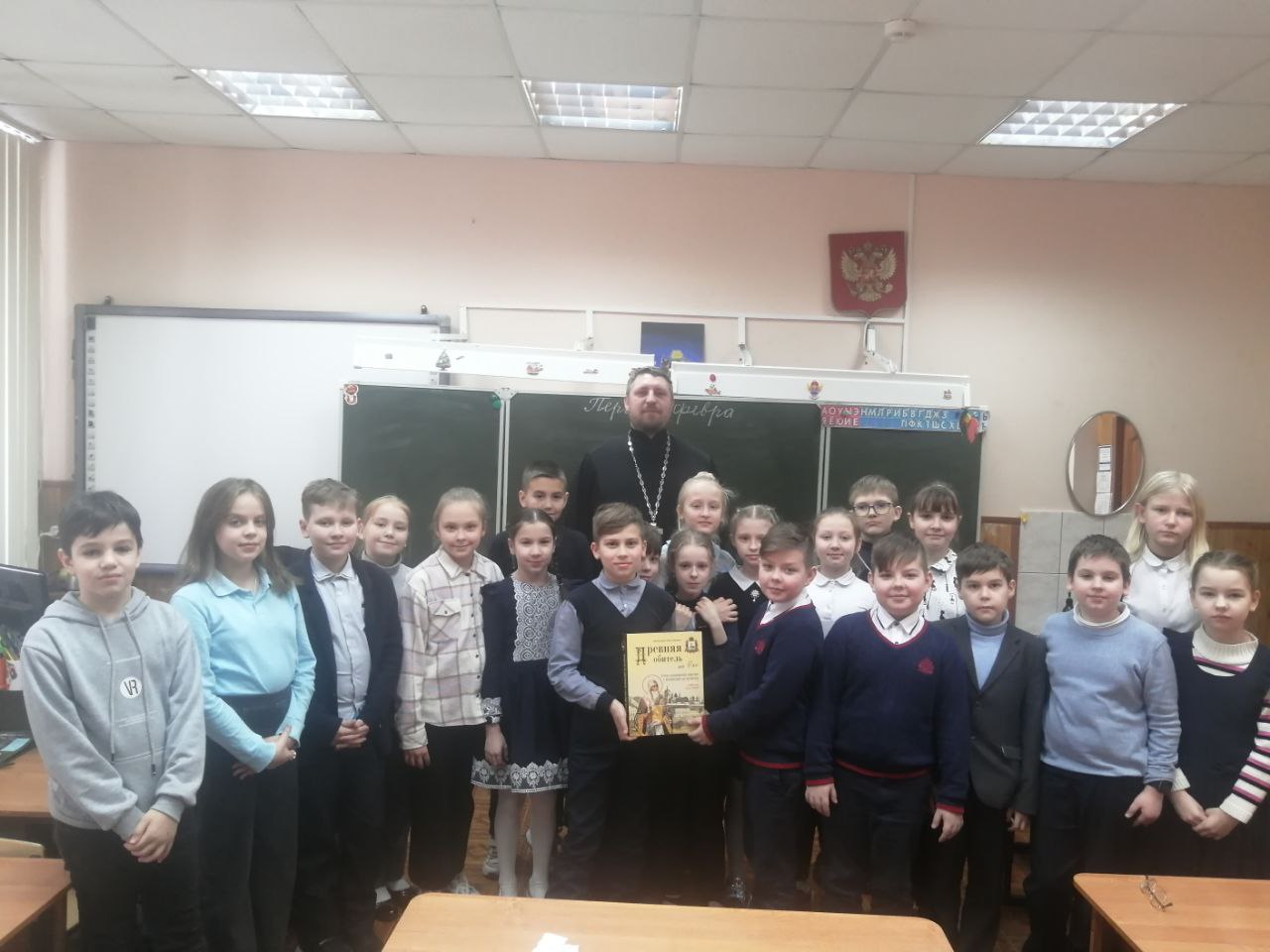 1 февраля помощник благочинного Приокского округа Нижегородской епархии по образованию и катехизации протоиерей Александр Литвиненко провел урок по основам православной культуры в 4 В классе гимназии № 17 Приокского района Нижнего Новгорода.