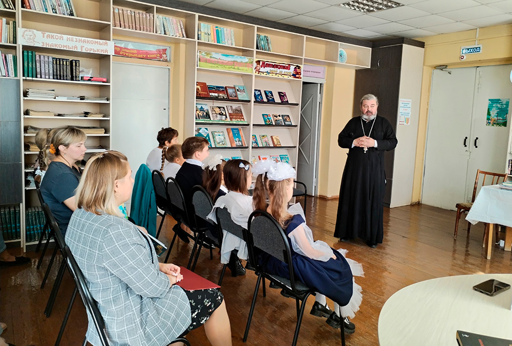 В ходе беседы учитель порекомендовала родителям православную литературу для чтения детям, а затем, по благословлению отца Андрея, раздала детям текст молитвенного правила для детей.