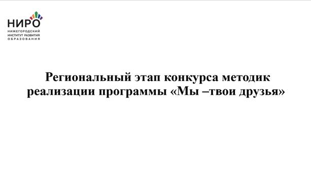 Нижегородский институт развития образования проводит региональный этап конкурса методик реализации программы «Мы –твои друзья»в 2022 – 2023 году.
