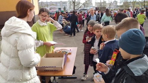Традиционно выручка от благотворительной ярмарки пойдёт на благотворительные цели, в том числе и на помощь семьям, в которых мобилизованы в СВО главы семей. Ученики, классные руководители, родители готовились к ярмарке, гимназисты подготовили изделия ручной работы, родители напекли прекрасные куличи, пироги, всевозможные кулинарные шедевры. Особенно надо отметить работу активистов молодежного отдела Воскресенского благочиния, которые подготовили для ребят очень интересное и занимательное пасхальное развлечение – викторину и мастер-класс по изготовлению Пасхальной открытки. Также волонтеры следили за порядком.
