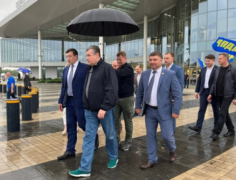 В нижегородском аэропорту лидера либерал-демократов встретили губернатора Глеб Никитин и однопартийцы. Известно, что Слуцкий будет находиться в Нижегородской области до 10 июля.