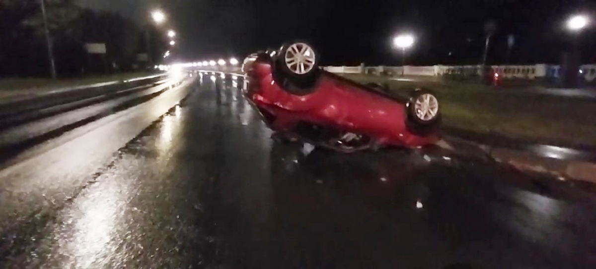 Автомобиль Nissan Juke в половине первого часа ночи 4 июня перевернулся на крышу на Нижневолжской набережной, в районе Георгиевского съезда.