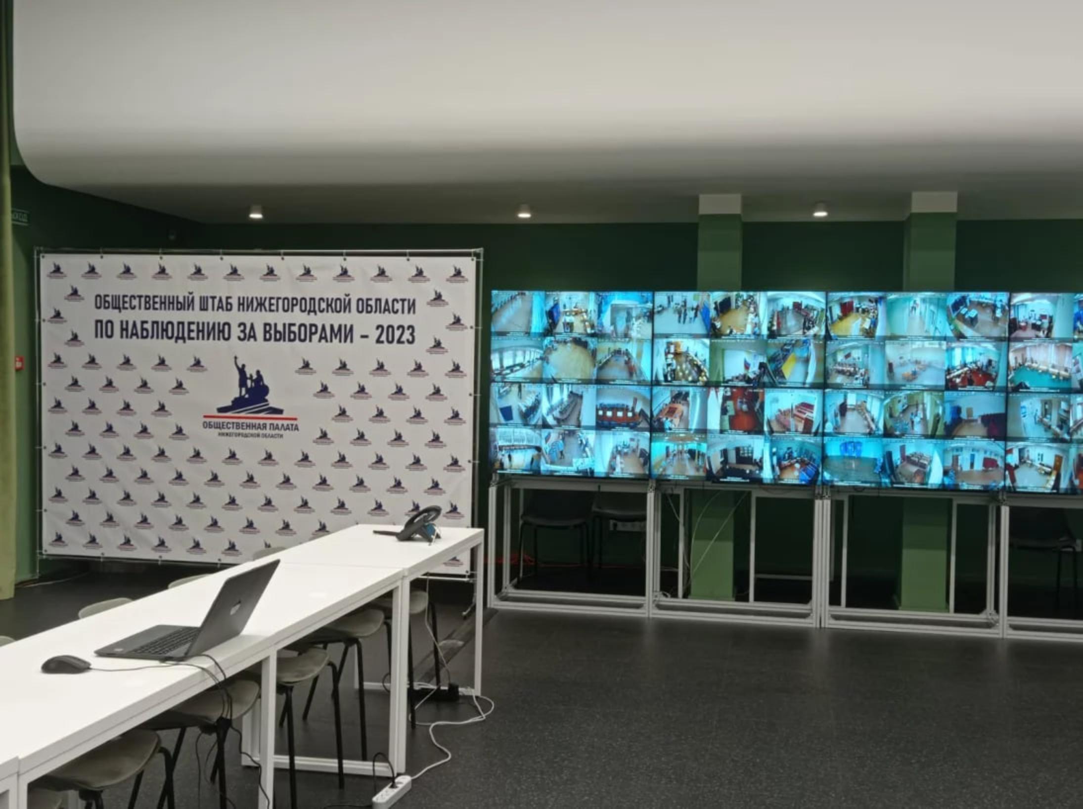 8 сентября в 8.00 Общественный штаб Нижегородской области по наблюдению за выборами начал свою работу. В дни голосования в Доме народного единства работа штаба ведется в ситуационном центре и центре общественного наблюдения (видеонаблюдения) (ЦОН), где организованы видеостена с трансляцией изображений с избирательных участков и рабочие места для доступа к камерам на избирательных участках, а также для осуществления наблюдения за ходом ДЭГ.
