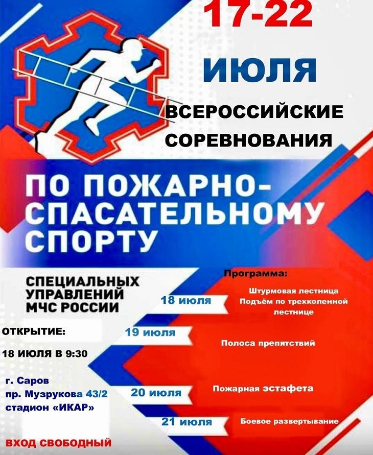 Всероссийские соревнования МЧС России по пожарно-спасательному спорту пройдут в Сарове с 17 по 22 июля.