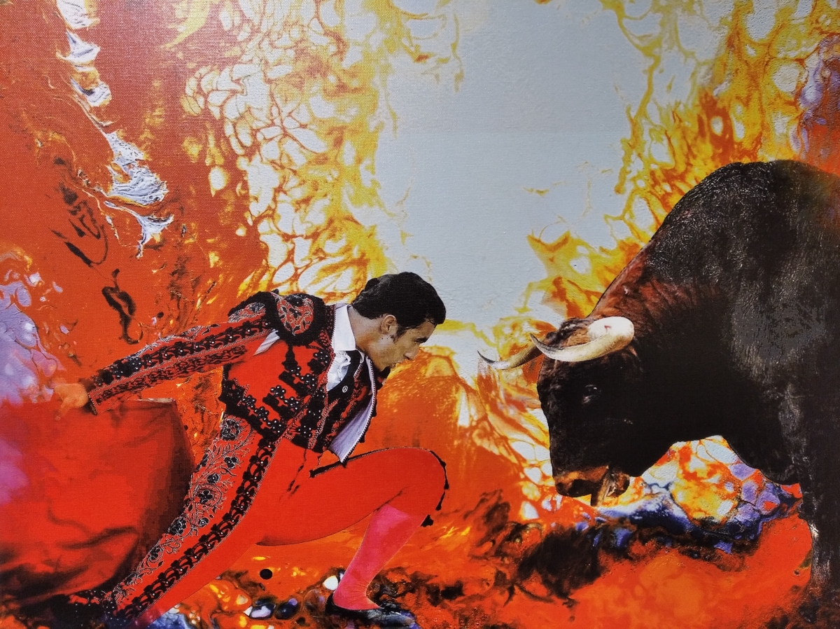 «Масло, акварель, гуашь, пастель. И вдруг – цифра. Рудаковский ярко-красный цвет прекрасно соответствует теме агрессивности корриды», – считает Ольга Николаевна.
