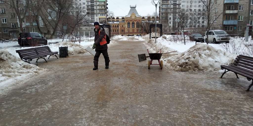 Как отметил и. о. главы Нижегородского района Сергей Крутов, содержание и уборка общественных пространств, где гуляют нижегородцы и гости города, находятся на особом контроле. «В связи с особенностями погоды люди и техника, задействованные в уборке снега, круглосуточно находятся в режиме повышенной готовности. Улично-дорожная сеть, в первую очередь особо опасные участки, обрабатывается ПГМ. Производится очистка от наледи территорий с повышенным пешеходным трафиком, особое внимание уделяется остановкам общественного транспорта, лестничным сходам и мостам. Накануне на пересечении улиц Большая Печерская и Нестерова работала водооткачивающая техника — чтобы избежать гололёда в минусовую температуру. Также идут работы по вывозу снега: например, сегодня работы пройдут на улицах Заломова, Семашко, Большая Печерская, Провиантская, Грузинская, Рождественская и др.» — рассказал Сергей Крутов.