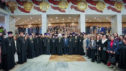 В зале Государственного Кремлевского дворца собралось свыше 5 тысяч человек: Преосвященные архипастыри — члены Священного Синода и Высшего Церковного Совета, главы экзархатов, митрополий и епархиальные архиереи Русской Православной Церкви, представители Поместных Православных Церквей, представители федеральных и региональных органов власти, ректоры и представители свыше 250 российских и зарубежных вузов, директора и педагоги общеобразовательных организаций, священнослужители, приходские специалисты, деятели науки и культуры.