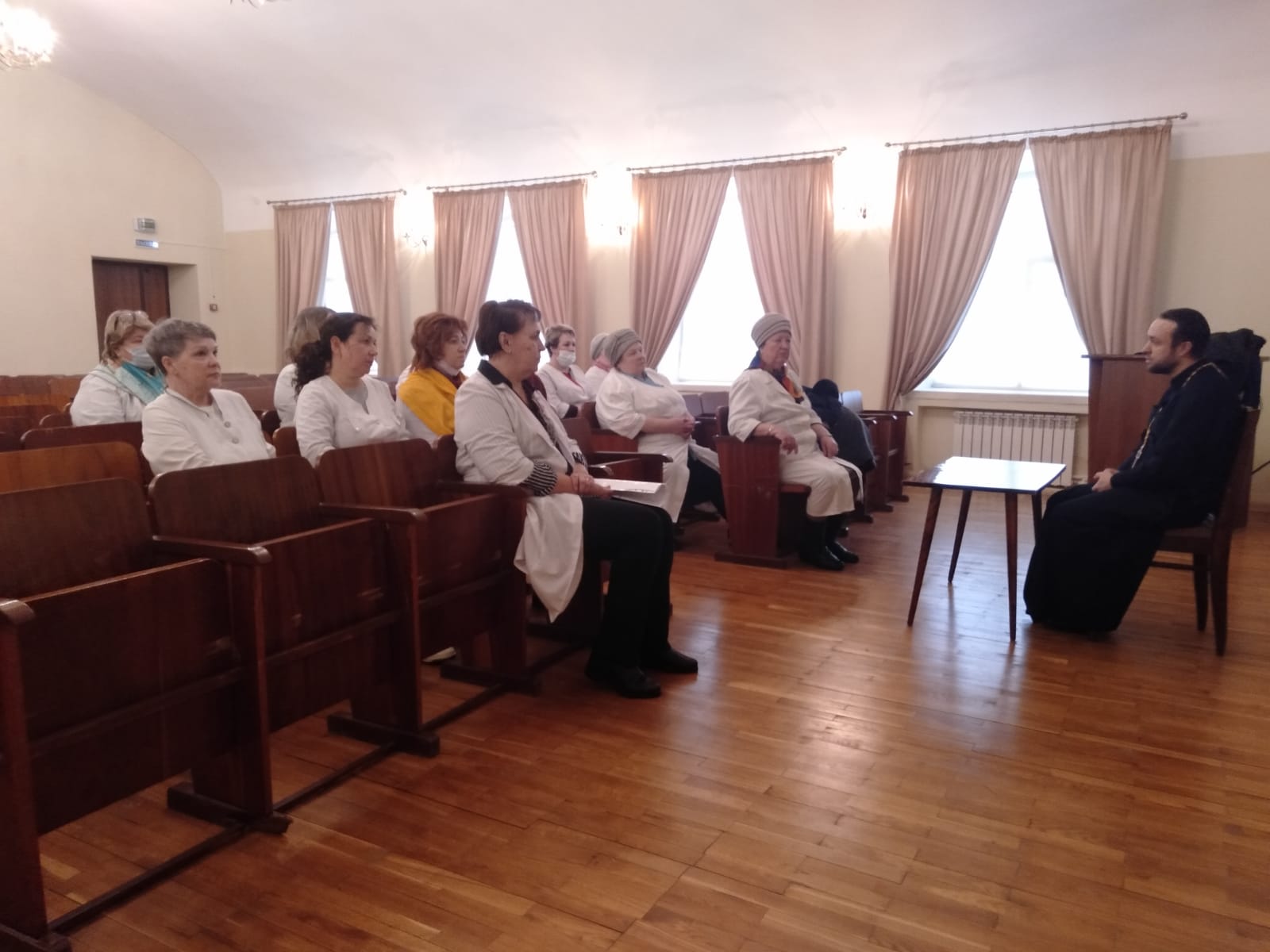 Священник провел духовную беседу с медицинским персоналом, затронув тему Великого поста. Помощник благочинного напомнил слушателям, что помимо гастрономических ограничений, которые предполагаются в дни поста, нужно проводить работу над собой, а также рассказал о сдержанности и терпении в нынешнее нелегкое время.