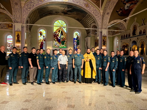 В богослужении приняли участие сотрудники Дзержинского Пожарно-спасательного гарнизона во главе с начальником 2-ПСО полковником внутренней службы Дмитрием Уткиным. В своей совместной молитве присутствующие просили Божьего благословения и молитвенного Покрова Царицы Небесной.