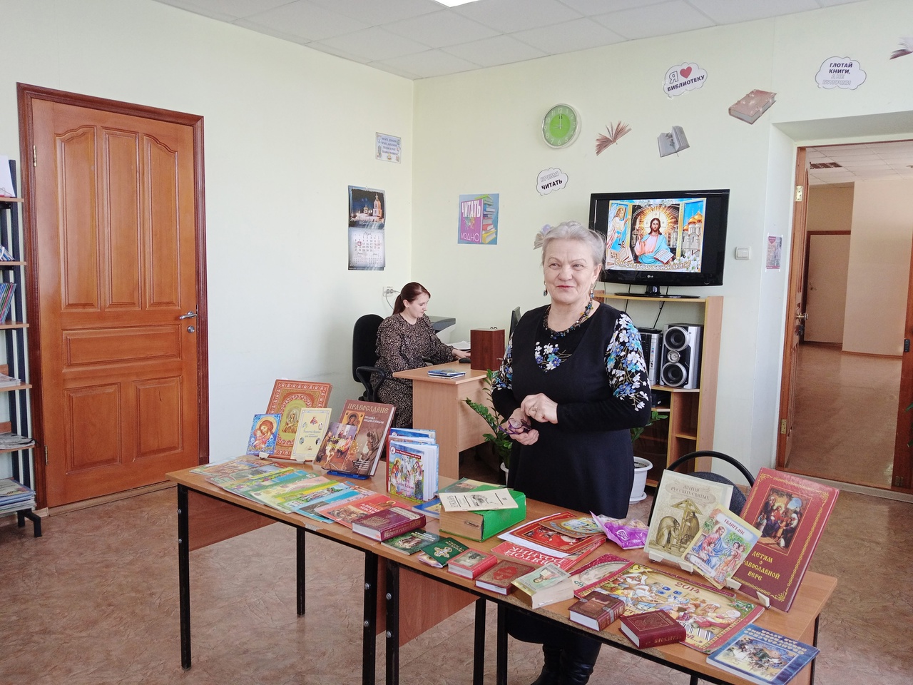 Дети активно включились в беседу, рассказывали о своих любимых книгах и героях, на которых они равняются; отвечали на вопросы викторины, получая сладкие призы. В день православной книги педагогам были подарены небольшие комплекты православной литературы: книги, газеты, раскраски от благочиния. В детской библиотеке работали книжные выставки «Перелистни страницы книги православной…» и «Читать. Знать. Верить».