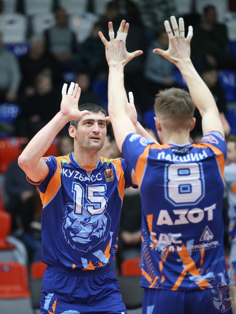 Кузбасс. Стартовый состав: Клец – 27 Всего (4 Подача, 21 Атака, 2 Блок); Пакшин – 14 (1, 13, 0); Маркин – 14 (1, 11, 2); Тавасиев – 11 (1, 5, 5); Щербаков – 5 (0, 3, 2); Кречетов – 1 (0, 0, 1). Либеро: Обмочаев – 18 Приемов (56% Пзт., 33% Отл.); Моисеев . Замена: Ткаченко – 3 (0, 0, 3); Карпухов – 1 (0, 1, 0); Бобров – 1 (0, 1, 0); Рукавишников – 0 ; Дьячков ; Ивлиев .