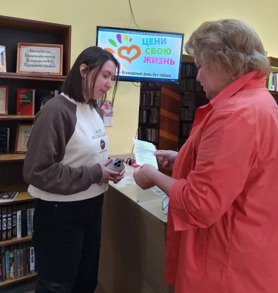 В это день в Правдинской городской библиотеке – филиале № 21 была проведена акция «Скажем «НЕТ» курению!», которая включала в себя раздачу информационных памяток на улице и в библиотеке с рекомендательным списком литературы по соблюдению здорового образа жизни «Не выкуривай себя из жизни»; проведение анкетирования в библиотеке о вреде никотина на организм человека с выбором одного из вариантов ответа.