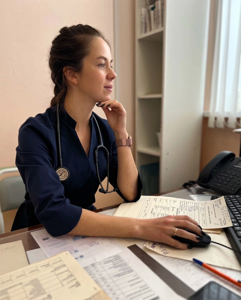 — Я веду не только прием, но и палаты в терапевтическом отделении. День спланировать не так просто. Чаще всего я начинаю прием с 8:15-8:20, вызываю людей по записи, после чего иду в обход по отделению, затем снова возвращаюсь на прием. В день принимаю примерно по 25 человек, бывает и больше. Очень много времени занимает оформление документации, выписка лекарств. После перерыва на обед, как правило, я обслуживаю вызовы на дому. Далее опять иду в отделение и оформляю истории болезни. Где-то в 15:00 возвращаюсь к работе участкового терапевта: оформляю карты пациентов, которые прошли диспансеризацию и профилактический осмотр, оформляю посыльные листы для назначения групп инвалидности. А вот в период дежурств по экстренной медицинской помощи нагрузка вдвойне увеличивается — это 2 недели в месяц примерно. На это время я не имею возможности выезжать из посёлка, ведь вызвать в больницу могут в любое время, а помощь пациентам нужно оказывать экстренно, — именно так описала своей рабочий день Наталья Сергеевна.