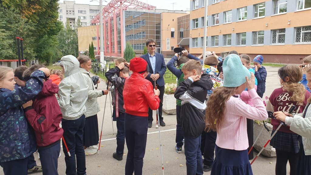 Итак, 7 сентября мы провели четыре урока для четырех четвертых классов, во время которых школьники убедились, что без зрения можно определять предметы наощупь, собирать слова из букв, угадывать звуки и запахи, и конечно спокойно гулять по школе и пришкольной территории. А еще, узнали как читать и писать по брайлю, какие гаджеты доступны незрячим людям, что такое тифлокомментарий и др.
