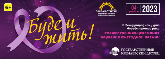 4 февраля 2023 года в 17:00 состоится Торжественная церемония награждения лауреатов ежегодной Всероссийской премии пациентов «Будем жить!» за мужество и вклад в борьбу против рака.