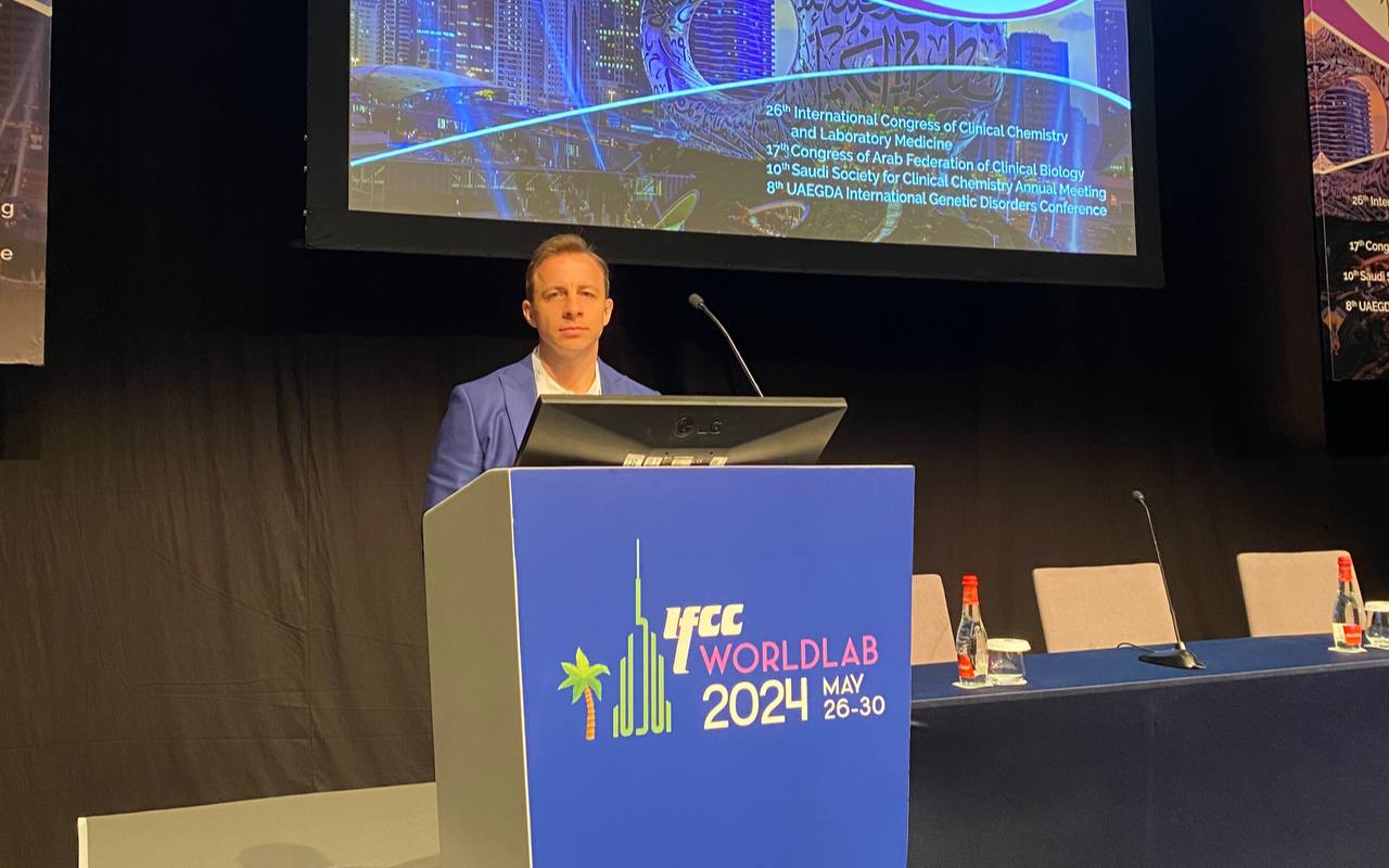 Заведующий научно-исследовательской лабораторией неинвазивной диагностики в спорте, кандидат биологических наук Александр Овчинников представил результаты пилотного исследования по научному проекту «Кардиальные маркеры в ротовой жидкости: неинвазивный подход в идентификации повреждения кардиомиоцитов, связанного с занятиями спортом» на 26-м Международном конгрессе клинической химии и лабораторной медицины (26th International Congress of Clinical Chemistry and Laboratory Medicine), который проходил в г. Дубай (Объединенные Арабские Эмираты) с 26 по 30 мая 2024 года. Тема научного доклада: «Saliva as a diagnostic tool for early detection of elevated cardiac troponin-I in athletes after strenuous exercise». Доклад вызвал особенный интерес у ученых Китайского университета.